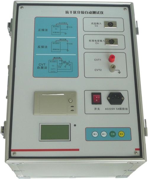 变频抗干扰介质损耗测试仪(Frequency interference dielectric loss tester)是发电厂、变电站等现场全自动测量各种高压电力设备介损正切值及电容量的高精度仪器。主电源由仪器内部的逆变器产生,经变压器升压后用于被试品测试。